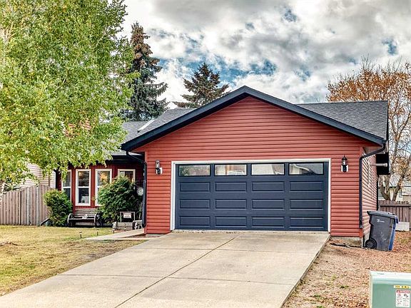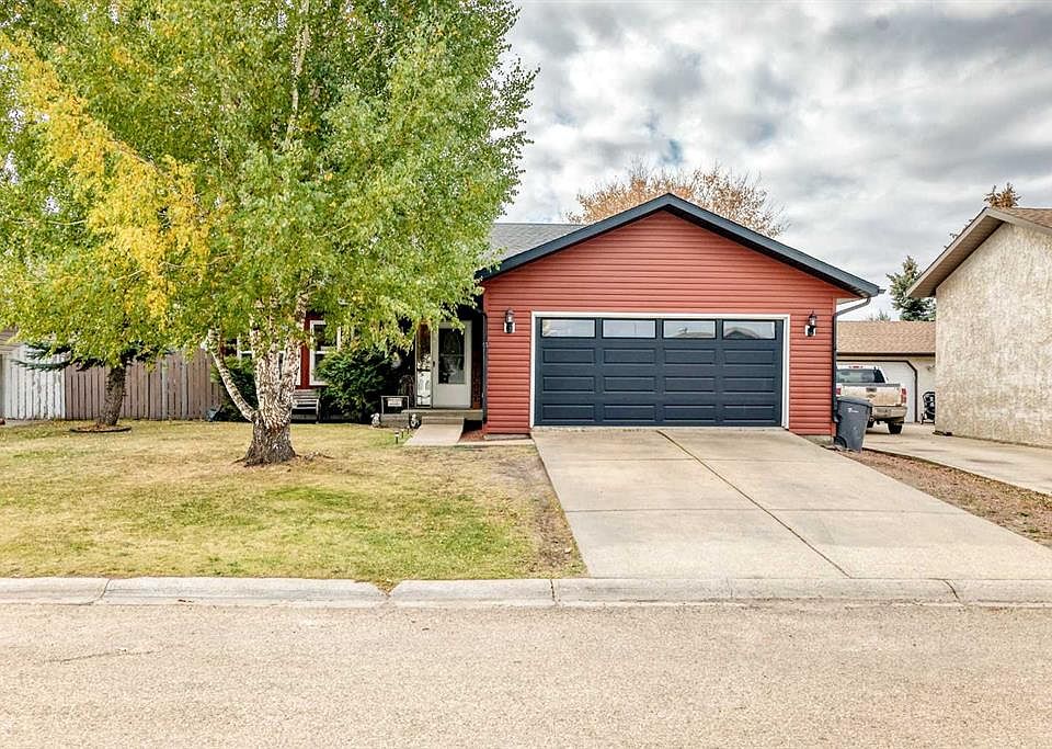 Welcome to this beautifully maintained bungalow, thoughtfully updated over the years to offer comfort, functionality, and style. Step into a generous living room featuring a cozy wood-burning fireplace—perfect for relaxing evenings. The floor plan flow leads seamlessly into the kitchen and dining area, where garden doors open to a ground-level patio, ideal for outdoor entertaining. Down the hall, you'll find three well-sized bedrooms, including a primary suite with a convenient pocket door to the main bath. The hallway is extra wide, designed with accessibility in mind. The fully finished basement expands your living space with a large family room, an additional spacious bedroom, a full bathroom, and a combined furnace/laundry room. Outside, enjoy a fenced backyard surrounded by mature trees that provide privacy and a peaceful atmosphere. The attached double garage is fully finished with workbenches and shelving, offering ample storage and workspace. A wide driveway accommodates extra parking with ease. Recent upgrades include new siding, shingles, most upstairs windows, select flooring, a modernized upstairs bathroom, updated fixtures, a newer hot water tank, and furnace—ensuring peace of mind and long-term value. This may be your chance to own this versatile and welcoming home. Elementary & High School as well as the arena are all within walking distance. Eckville is centrally located and a friendly community to live in.