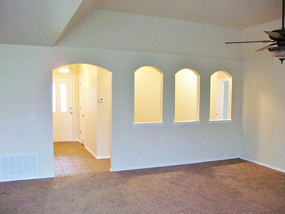 This single level home has 3 bedrooms. The large master bedroom has his & her generously sized walk-in closets. The well-planned master bath has double sinks, separate shower and tub areas, a toilet closet, a vanity/make-up niche built into a separate counter space and a linen closet. With nearly 1,800 sf of living space all of the rooms are light-filled and spacious. The floor plan is sensible, flowing and open with architectural flares such as a series of arched windows framing the hallway, tray ceilings, decorative tile inlays and upscale lighting. The living spaces are inviting, recently new carpeting and tile throughout, ceiling fans, new energy-efficient central AC and heat, a gas fireplace and more. The kitchen is clean and bright with white appliances and is efficient to work in with the convenience of a center island. A separate dining area overlooks the fully fenced backyard and patio area. The large laundry room has overhead cabinets (appliances not provided). Additional attic storage, with drop down stairs is located in the 2-car garage that has remotes. The home was built in 2002, is clean, well maintained and in the very nice neighborhood of Stone Creek Estates. Available now. Rent is $1,275, pets upon approval with non-refundable pet fee. Application fee includes background check and credit report. E-mail or call (831) 402-5376 to arrange a viewing. Pets upon approval with non-refundable pet fee. Application fee includes background check and credit report.