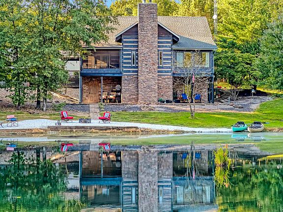 Custom log home and two outbuildings 12 miles north of Jasper on 10 acres! With over 2500 sq ft of living space and approximately 500 sq ft in the loft, the inside of the home is just as impressive as the exterior. As you enter the property, a pole barn with lots of parking is to the south and a private tree lined lane leads you to the home and detached garage. A covered carport allows easy access to a mud room with pantry. Through the front door, you will appreciate the craftsmanship of the hand hewn wood throughout. The focal points of the home are the large stone wood-burning fireplaces, cathedral ceilings and amazing views of the private stocked lake. A screened-in porch is conveniently located off of the eat-in kitchen. The newly remodeled main level master bedroom has a sitting room surrounded by large windows and full bath. The loft could be used as an additional bedroom, office or living area. The finished walkout basement has two additional bedrooms and a third room that has multiple uses. Two exterior basement doors offer easy access to both covered patios and fire pit area on the beach. There is a fully functional office attached to the detached garage just steps from the home. A large fenced in animal pen off of the detached garage allows your pets to be indoors or out. A separate shed and wooded acreage is also located to the west of the garage. The newer 36' x 40' pole barn (14' ceilings) hosts its own finished bathroom, central A/C, 200 amp electric service, septic and 2 oversized bay doors. With beautiful views and privacy on a property like this, what more do you need!
