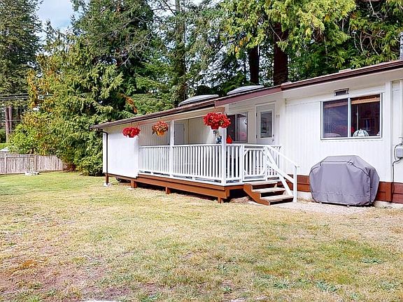 Beautifully maintain, well-cared, with updates, this 1+ bedroom mobile home is situated on a larger sunny corner lot in the Pender Harbor community. The welcoming entry is through the spacious covered sundeck to a bright and sunny light color scheme. Skylight above the breakfast area, custom wood cabinets in the 4 pce. bath and bedroom. Flex room is multi-purpose as an office/laundry room with storage. The additional storage room is large, heated, and has interior/exterior access. Lots of room in the rear yard for your activities and includes an 8'X8' insulated shed for extra storage/garden tools. Marina, golf course and shopping nearby.