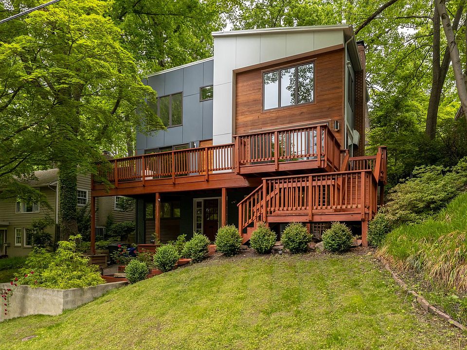 Bethesda beauty! 6BR/4BA bath detached home renovated top to bottom - including an entire level added in 2018. Over 3400 sqft of living space, this three level home includes the most spectacular open floor plan and breathtaking views. A chef's dream kitchen with top of the line stainless steel appliances, endless counter and cabinet space, and island perfect for entertaining. A breakfast area allows unobstructed views of the front deck and lush greenery. Open living area leads to formal dining area -- all great for hosting guests. A large family room leads to serene backyard. Also on the main level, a bedroom (makes for a great home office!) and a full bathroom. Head up to find four bedrooms and two full bathrooms, including an unforgettable primary suite with 13 foot ceilings and primary bath with spa-like soaking tub and standing shower! The walkout lower level includes a rec room, bedroom, and fully renovated bathroom (renovated in 2022)! Multiple outdoor spaces make for a great flow, including front deck overlooking the front yard. Or head out back to enjoy grilling while soaking in the scenes of the tranquil yard. Top to bottom - this home is a showstopper! Commuting is a breeze with Mass Ave seconds away and easy access to Virginia via 495. Walking distance to Glen Echo Park, enjoy the Carousel, Puppet Theater, Park, Aquarium, and classes such as art, pottery, silver making, and music! Located on a quiet cul-de-sac, 5223 Wyoming Road has it all! Tenant responsible for utilities, lawn maintenance, and gutter maintenance. Pets considered on case by case basis. Long term leases welcome.
