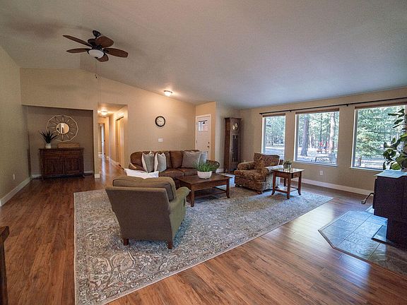 New interior paint throughout as of 10.31. Light & bright with vaulted ceilings and large picture windows to take advantage of tranquil 1.36 acre corner lot. Three year new kitchen, appliances, and engineered wood flooring. Get ready for sweater weather with a new woodstove, roof de-icing cable and 3 cords of dry and seasoned wood. Fully fenced backyard, newly built storage shed and cement paver patio. On paved road has new chip-seal.
