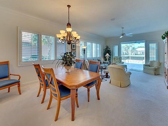 Absolutely Meticulous! This maintenance free home, located in The Highlands of Rosedale, has been lovingly and beautifully cared for and you would think it is brand new! Exquisite double mahogany door entrance with stained glass and decorative hardware. Home is neutral, clean, clean, clean, and absolutely move in ready! Open greatroom design, lots of natural light, plantation shutters, French doors and decorative lighting. Kitchen is spacious, walk-in pantry, bisque Corian, 42" cabinetry, decorative recipe desk with glass uppers to display your "wares". 7 ¼" crown moldings and 5 ¼" wide baseboards are a lovely accent throughout the home. Master suite is tranquil and inviting with pool and lake view. Bath has double vanities, Roman shower, large soaker tub and a fabulous walk-in closet. Guest suite with private bath, oversized den with 8' double doors and glass block lighting. Step out to your lanai and take a deep breath! Large heated self cleaning pool, spacious deck, perfect for entertaining, with a fabulous lake view. Large private courtyard patio with tropical plantings. Home features whole house music/speakers, in-wall pest control, oversized 2.5 garage with epoxy coated floor and cabinetry. This home is absolutely a pleasure to show. Come see us today!
