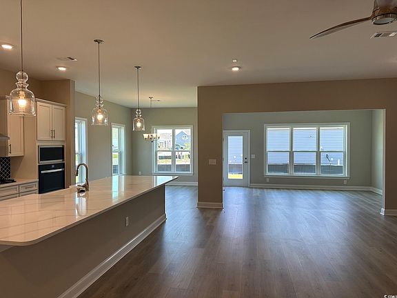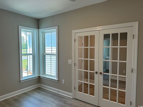 This fantastic Sterling home is fully loaded with beautiful, personalized choices selected by the buyers. 3 Bedrooms, 3 full baths, a Study with French doors, a bright and airy Carolina room, and a huge Gourmet kitchen that opens to the Great room and Dining room. Located on a generous corner lot, this Sterling boasts upgraded features; Level 3 Quartz counter tops, Level 2 Mohawk REV wood laminate throughout, Level 2 tile, Level 3 backsplash, Whirlpool stainless steel kitchen appliances (natural gas cooktop, exhaust hood vented outside, dishwasher, wall oven and wall microwave), under cabinet lights, Progress Lighting pendant lights, Progress Lighting ceiling fans, an icicle glass pantry door, wooden pantry shelves, Level 3 cabinets with roll out shelves and a waste basket drawer, a designer trim package, upgraded brushed nickel door levers, a lawn irrigation system, 2" faux wood window blinds, additional insulation in the garage walls and ceilings, and a Primary bedroom with a tray ceiling, giant walk in closet, double vanity, and a 5ft walk in tile shower. 100% Energy Star Certified and EPA Indoor AirPlus Qualified with the complete Tyvek house wrap system, spray foam insulation, and Aeroseal/Aerobarrier which means improved energy efficiency and indoor air quality to give you a healthier, and more comfortable home with less pests, less moisture, less air loss, and a lower utility cost. Amenities include a premier location (2 miles to the shopping and dining venues in Carolina Forest, 6 miles to the beach, 7 miles to Market Common, and minutes to Highway 31), a community pool and clubhouse with a catering kitchen, gathering hall, and exercise room.