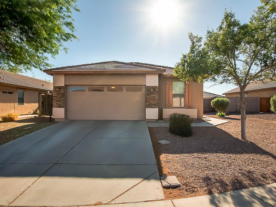 Look no further, you've found the home you were waiting for! Located in Buckeye, this lavish 4 bed, 2 bath property boasts desert landscaping, 2 car garage, RV gate, vaulted ceilings, and neutral paint throughout. The fabulous kitchen has everything you need for home cooking, ample cabinet and counter space, a pantry, matching appliances, a lovely island with breakfast bar, and recessed lighting. Inside the beautiful master bedroom you will find a spacious walk-in closet and a full bath with double sinks as well as separate tub and shower. The charming backyard, with its covered patio and extended seating area, has tons of potential for customizing it any way you can imagine! The good ones never last, don't waste any time and schedule a showing NOW!