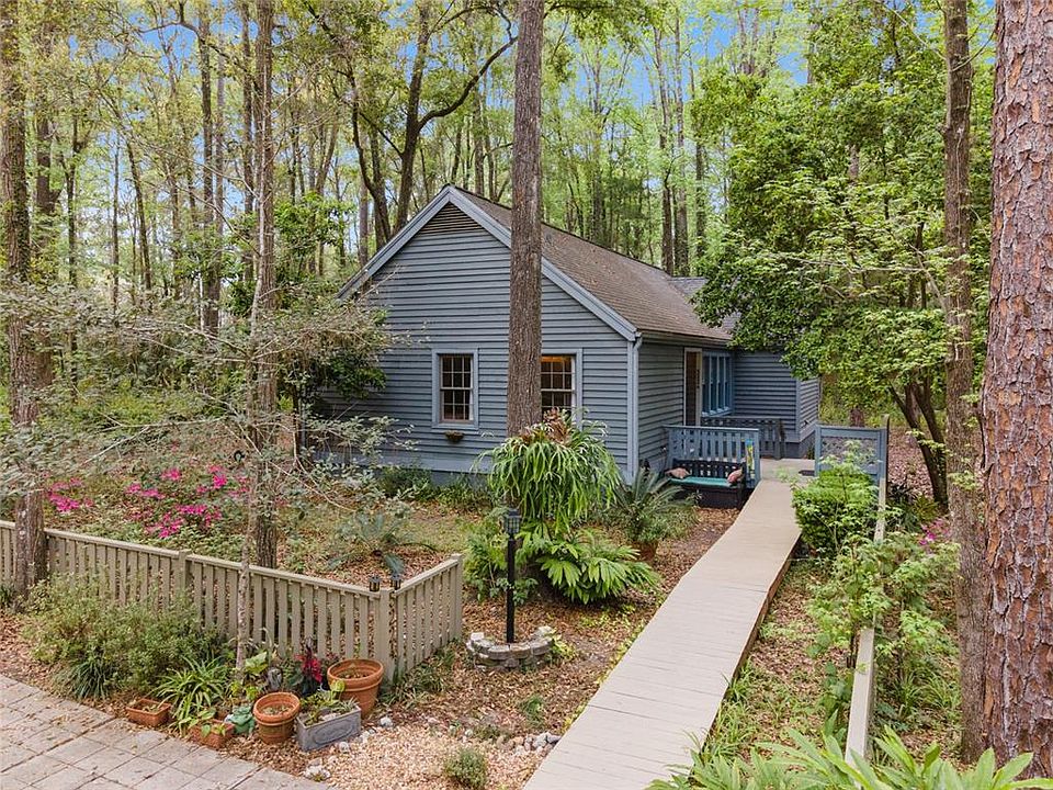 Don’t miss your chance to live in this beautiful cottage home in Heritage Green in the Haile Plantation Neighborhoods! Inside the home, you will find luxury vinyl plank flooring throughout and a large living room with a wood burning fireplace. Through the open kitchen, you’ll find plenty of real wood oak cabinets and a dedicated laundry room with extra storage. On one side of the home, you’ll find the master bedroom and bath. On the other side of the home you’ll find the other two bedrooms. Like storage? Both the Master Bedroom and the second bedroom have two full closets each. The 3rd bedroom would make a great bedroom, or turn it into your office, home gym, or craft room. Through french doors off the dining area, there is a huge deck that overlooks a private wooded backyard with NO neighbors behind you. Enjoy the birds flitting about and the wildlife prancing through the woods while you enjoy your morning coffee on your wooden deck. This home feels like you’re in the secluded woods well away from the city, yet it’s centrally located just a few blocks from the Haile Village Center, less than 5 miles to Butler Plaza and Celebration Pointe Shopping areas, and only about 7 miles to UF Health/Shands. You’ll love coming home to a private oasis overlooking greenery and trees! Live the Haile Lifestyle: Walk to the Farmers Market on Saturday mornings and enjoy all the benefits of this amazing little town center. Enjoy the many walking trails and biking paths along the Haile village. Pick up a game of Basketball or take the kiddos to the Playground. For an extra fee, you can even access the highly coveted pool and golf course just a few blocks away in Haile Village. No need to worry about parking either. There is one covered space, one designated open space, and guest parking available. Thinking about buying near the most coveted A rated schools in town? Zoned for Wiles Elementary, Kanapaha Middle School and Buchholz High School. Homes in this small cluster of cottages rarely go on sale, and finding something this beautiful under $300,000 in Haile is near impossible. Make an offer today.