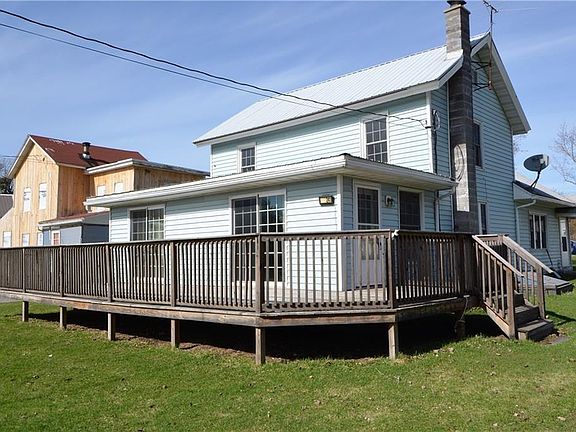 Sweet country property located on over a half acre of land, just minutes from the NYS Thruway in the hamlet of historical Peterboro. This three bedroom is updated with windows, and sliders, wrap-around front deck, lighting, new chimney and a metal roof. Large eat-in country kitchen with plenty of cupboard space and room. First floor master bedroom has a sliding glass door to outside porch and a large full bath/laundry room. Relax after a long day in the jet tub! Huge outdoor barn.