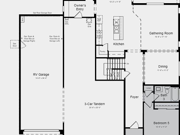 MLS#6554548 August Completion! The 55-RV4 floor plan in Tierra Montana Fiesta is a stunning 2-story design that features 4 bedrooms, 3 baths, a 3-car tandem garage, an RV garage, a flex room, formal dining, and 2,819 square feet of living space. WOW! Upon entering, you are greeted with a private bedroom and full bath that overlooks the front porch - perfect for family or overnight guests. The open kitchen with center island, dining, and gathering room seamlessly connect so you can be sure you won't miss your favorite show or the big game while you're preparing dinner. Enjoy the upstairs loft for family game night or study area for the kids. Relax in the spacious owner's suite that boasts a large walk-in closet, soaking tub, separate walk-in shower, and dual vanity. Two secondary bedrooms, a shared full bath with dual sinks, and a convenient laundry room round out this amazing home. Structural options include: garden tub with separate shower at owner's bath, rear garage door to RV garage, bed 5 with bath 3, loft, garage service door, and 8' interior doors.