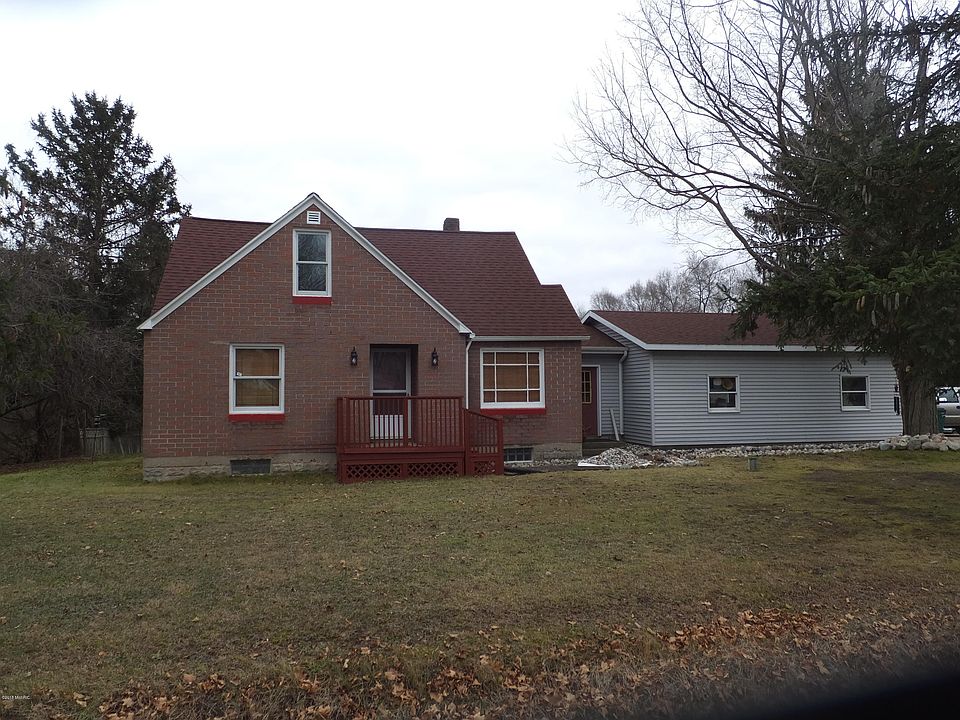 Just what you've been looking for! Affordable home on almost 10 acres with huge attached garage, 24 x 40 pole barn and an old small horse barn. This brick cape cod style home features a large kitchen and dining area, 14 x 30 3 season room that could easily be converted to year round use. Located in Reeths-Puffer School District, this one won't last so call today for your personal showing. Light fixture in breezeway and the light over the pool table does not stay. Buyer to verify all information.