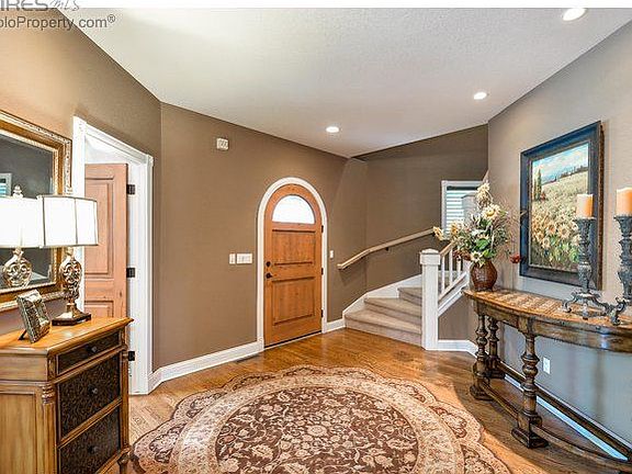 Special home designed by renowned architect John Dengler on 1 of the premium cul-de-sacs in Northern CO. Gorgeous remodeled kit w/GE Monogram built-in frig, remodeled bsmt w/bar, frpl, beam ceilings & 82" TV with built in. Master has radiant heated tile floor & custom closet. 3rd floor bonus room. Expanded 4-car garage. Flagstone patio, pergola, granite built in gas grill/stove & mature trees. Hot tub area. New roof. Southern style wrap-around porch. Close to trails & school. Pre-inspected.