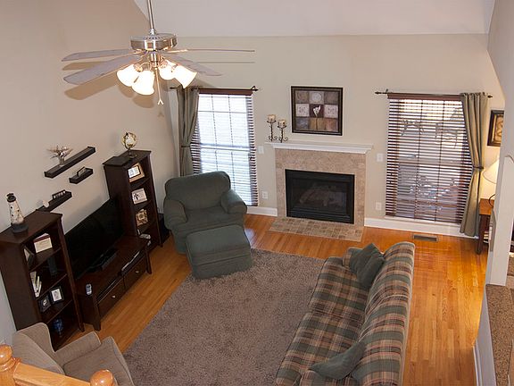 Harvest Ridge 3Br 2.5Ba on cul-de-sac! Kitchen features granite countertops, undermount sink, tile backsplash, black appliances. Fpl in living rm. Main level master w/jetted tub, separate shower, tile flooring. Hardwood flooring throughout most of main. Main level study/office. Wrought iron pickets on stairway leading upstairs. Main level laundry rm with sink. Large screen porch with ceiling fans. 2-car attached side load garage. Good amount of attic storage. Neighborhood pool included with HOA dues!