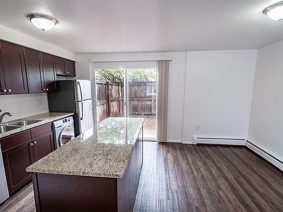 Awesome Location blocks away from Olde Town Arvada, night life, restaurants, bars, minutes from Light rail, with easy access to downtown, totally updated unit from top to bottom, New Everything, This condo is set up like a Townhome no one above or below. Also this particular unit is an End unit! Living room opens to eating space area and kitchen, which includes all upgraded soft touch cabinets and drawers, beautiful granite countertops, huge kitchen island, all new stainless steel appliances including a stainless steel washer/dryer combination, beautiful laminate floors, fresh paint, new updated lighting, new 6 panel doors, stunning bathroom with all new stylish tile, new sink, new vanity, new toilette, new tub, newer windows, the exterior was just painted, newer roof, HOA fee includes HEAT! Quick close immediate possession. This is truly an Awesome condo in a fantastic area! Please contact agent concerning financing.