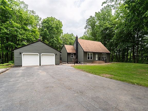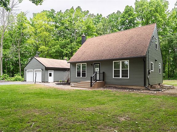 A perfect setting for this Cape Cod home nestled in the trees on 1.4 acres. Features include a newer kitchen, spacious living room with optional propane gas stove, 3 beds, 1.5 baths, enclosed rear sun porch and partially finished basement. Composite front entry, side entry and rear deck overlooking a very pleasant and private yard. Two bay detached garage with wood stove and shed. All new vinyl siding and new windows. Newer 200 AMP electric. Heated floor in full bath. Blacktop drive with turn around. Awesome location on a super quiet country road in the Alexander school district. Delayed negotiations through Friday, June 13th, 2025 @ 11AM.