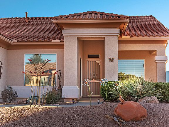 Fabulous location on the Agave Highlands Golf Course with sweeping views of the Mingus Mountains. Verde Santa Fe at it's finest waits for you. Clubhouse member with HOA at only $68.00 a month. Two big bay windows take in the back yard scenery with a relaxing fountain and a waterfall. Open floor plan & split bedrooms. Kitchen in the heart of the house & perfect for entertaining. Ample counter top & cabinet space. Wonderful back yard with covered patio to enjoy those beautiful starry nights. Front patio with views & a courtyard. Yard art included. Natural gas fireplace will make you feel cozy. Join the fun at the Clubhouse with a big heated pool, fitness center, card room, library, kitchen, outdoor grill, jacuzzi, & billiard room. This lovely Verde Santa Fe neighborhood is a 55+.