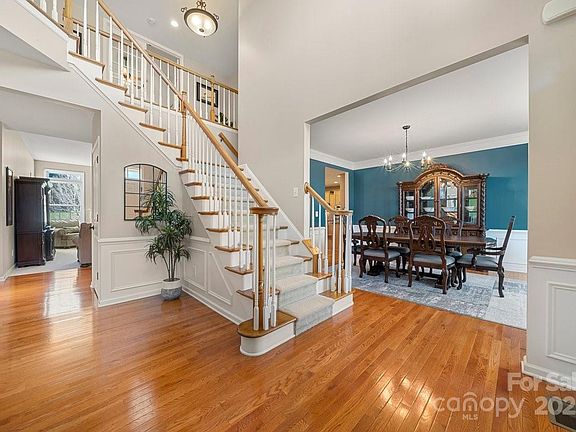 Welcome to this 5 bedroom home on a little over half an acre located on a cul-de-sac street. Beautiful curb appeal with brick front, an inviting double front door, and a side-load garage. Upon entering the home, you are welcomed by a two-story foyer and an elegant split staircase. The main floor boasts a cozy bedroom and a full bath, ideal for welcoming overnight guests or accommodating long-term visitors. Adjacent space off kitchen has a breakfast bar, additional dining area and a wine bar. Upstairs you will find 3 bedrooms plus the primary bedroom. The primary bedroom sanctuary has a sitting area, changing area, outside of the walk-in-closet and large onsuite with oversized garden tub and double vanities. Well maintained and mature landscaping w/inground irrigation.