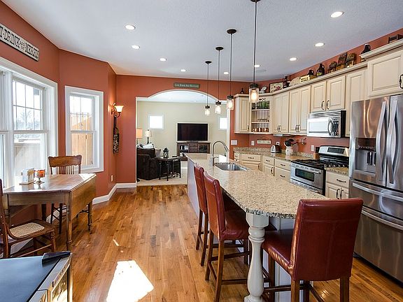 Built in 2006, this 4,432 sq foot home has so much to offer. A two story walkout on a wooded lot in a small quaint neighborhood with access to commercial business and bus line in close proximity. There is also the option to enroll your kids into either the Rochester or Stewartville school system as both buses come into the neighborhood. This home comes complete with 5 bedrooms, 4 on the second level and 1 in the walkout basement, 3 bathrooms and one half bath. A spacious three stall heated garage with ample space for storage and a built in workbench. The covered porch and the deck is some of the greatest places to have your morning coffee or evening family dinner in the summer months. Enjoy the deck with a hottub and speakers and a beautiful pergola. The porch boasts sunlight in the evening hours making desirable to wind down from your busy day. The basement was finished in 2015, complete with a custom granitcrete shower and cozy bedroom that will suit yours guests. Spacious basement with plenty of storage space and to put a pool table or game table of your choice. An electric, modern slim line fireplace sets off the look in the newly finished basement. A home with four bedrooms on the second floor, all rooms are spacious with large closets. The master suite has a beautiful jetted tub, a walk in shower with dual shower heads and a walk in closet large enough to organize and hang your wardrobe. Enjoy the main floor living with an open spacious feel. Solid hardwood walnut throughout the main, an office, large mudroom and a kitchen that sits between the hearth room and family room. Speakers and a sonos systems is in the kitchen to listen to your favorite music heard throughout the main foor. Amenities include: Second floor laundry with the option for a second in main floor mudroom April air 3 zone damper system to set each floor at the temp you desire Walk in closets Large pantry New carpet on main floor 2016 200 amp electrical service Heated garage Wooded outlot Sprinkler system Large deck for entertaining Covered front porch TV outlet in all rooms Office on main floor Double hung windows Smart system home with lighting Ample storage throughout home 1 gas and 1 electric fireplace Granite in kitchen Air jetted jakuzzi in Master Large master walk in closet Basement has spray foam sealed trusses 9 ft ceiling basement and main floor Dual fuel double oven New gutters 2015 9ft ceilings basement and main
