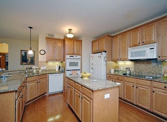 Beautiful sought after 2 BR plus den unit! Cooks delight kitchen! Maple cabinets w/pull outs, granite counters, center island & hardwd floors. Bay window & FP in living room. Lots of closets. Private deck. Guest suite. Party room, exercise, & club rooms.