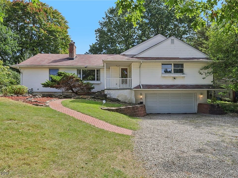 Sitting on the highest point in Cuyahoga County, this charming 3 bed 3 bath 3 car garage home in North Solon sits on .82 acres in a park like setting. There a few special features you should not miss when imagining the renovation possibilities of this charming raised ranch style home. There are original hardwood floors throughout most of the home and 2 fireplaces, one on each level. There is a walk up attic access for additional storage options with easy access. And laundry connections can be found on both levels of the home. The partially finished basement walks out to the 3 car garage, one of which bay is tandem. However it is the tremendously beautiful lot, just under an acre in size, that is the showstopper, providing plenty of outdoor space for family enjoyment. All appliances stay with they home. Kitchen has a gas convection range. There is an 2nd refrigerator and 2 upright freezers in the basement. Home is being sold by the family trust in as-is condition. Seller to make no repairs. The basement kitchenette area and 3rd full bathroom need some TLC. There are projects the next buyer will assume, but with a little work, this lovely ranch will totally shine. This home is in the Solon School District, which is consistently ranked among the top in Northeast Ohio and in the state overall.