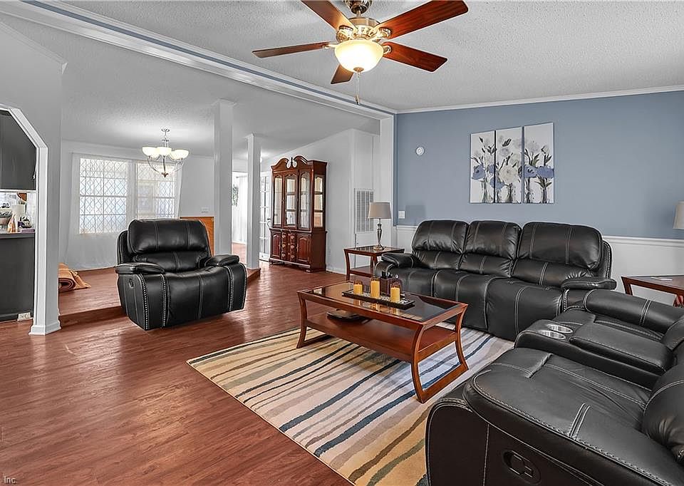 MOVE IN READY! Welcome to An Adorable & Magnificent Home Designed with Style, Class & Functionality. 3 Bedroom & 2.5 Baths have New Architectural Roof & 2 New Skylights, One in Each Bathroom (Aug 2025). A Lg. Kitchen with Stainless Steel Appliances is a Chef's Dream Come True. Come & Be Mesmerized by the Dining Room on a Darling Raised Floor, Ideal for Intimate Dining or Formal Entertaining. Put Your Feet Up & Relax in the Amazing Sun Room Filled with Natural Sunlight. After Being Amazed from Inside This Home, Journey Outdoors & Be Blown Away by the Outdoors Living. This Huge Yard Allows A Grand Time for Family, Entertaining, or Simply Enjoying the Peaceful Outdoors. The Spacious 3 Car Garage Large Overhead Storage Throughout. This Lovely Home on 1 Acre Truly Offers A Wonderful Blend of Comfort, Charm & Enjoyment for You & Your Family's Pleasure. Shopping and Entertainment Nearby. Located within Suffolk outskirts, This Home Offers Everything You've Been Seeking. WELCOME HOME!