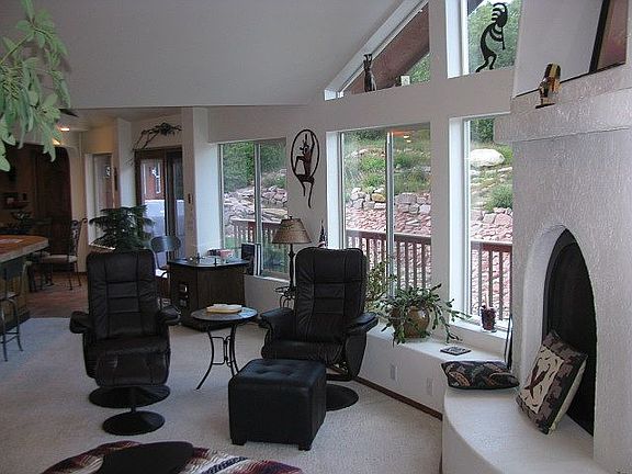 You will shout that this home is absolutely one of a kind. You will not be disappointed. It is awesome. Besides the numerous custom features that will make living in this home enjoyable the setting is second to none. It is located on almost an acre within the city of Colorado Springs. The views are incredible from the home as well as the numerous decks. The detached 28X26 garage gives you many options. It is a great place to keep all of your motorized toys. It possibly could be used for a home based business. The home is wired for sound with speakers throughout. The owners have hosted numerous weddings and receptions. One function had over 100 guests.