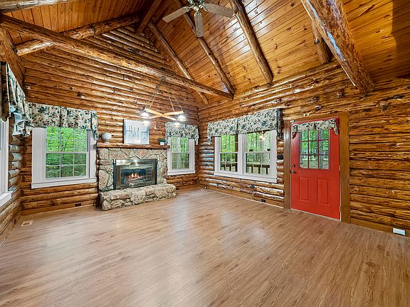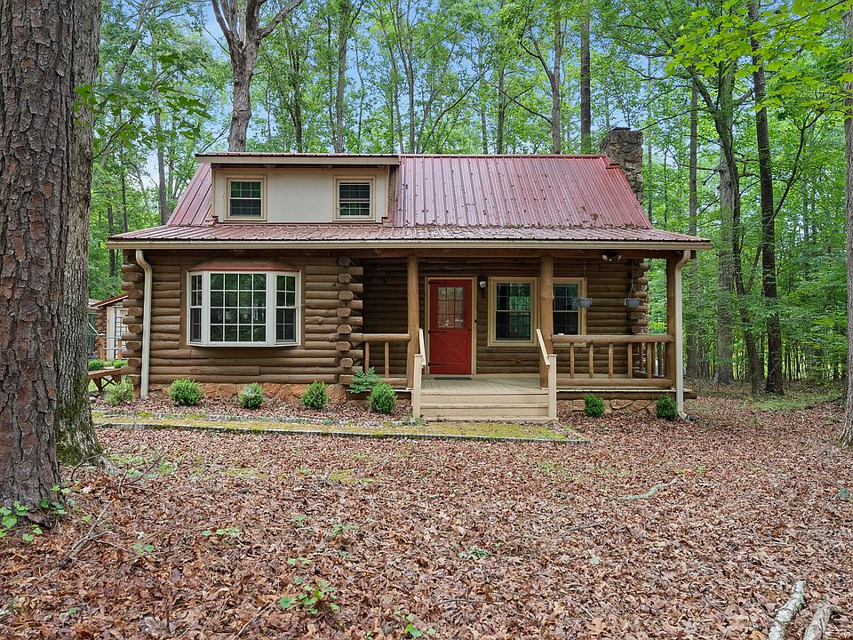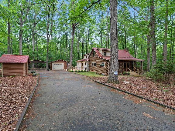 Picture yourself on almost an acre of privacy in your unique log home! It feels like a retreat away from the hustle and bustle but only minutes from your favorite things. These don't come by very often in our market, but you'll appreciate the craftsmanship and sturdiness of the home. Covered front porch allows you to take in the view and when you enter, you'll be impressed by the vaulted family room that opens to loft space! You'll even be able to cozy up by the gas log fireplace! Your breakfast nook will have you hanging out with nature and the kitchen is full service complete with trending white cabinets, white appliances and stainless refrigerator staying. The owner suite resides on the main floor with Built-In storage that will keep you completely organized! The private bathroom offers dual vanities, tub/shower combo and additional storage space. There is an additional bedroom downstairs that could be used as an office or Flex space of your choice. Upstairs you have the second bedroom suite, that has plenty of space to use as you choose, equally sized to the primary bedroom. Then on the opposite end you have loft space that we could picture as a hang out space or artist studio! Outdoors you are fully equipped with oversized tall carport, an ample one car garage and a utility shed with lean to. No covenants and in the county!