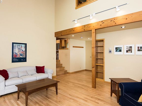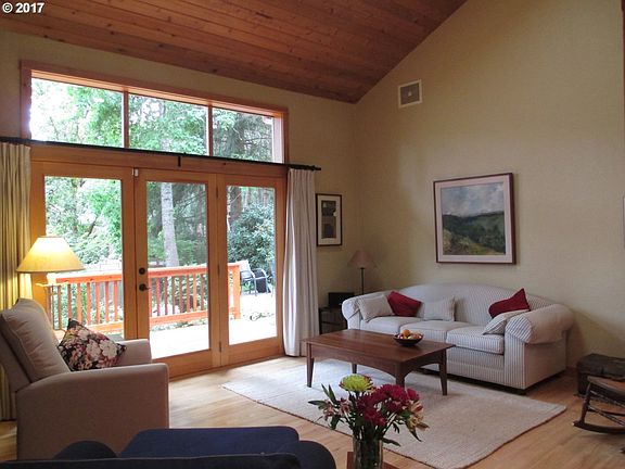Architecturally designed and Softtech built, charming custom one owner home in move-in ready. Hardwood floors, high wooden ceiling, walls of large windows, skylights & heated floor in M. bathroom. Kitchen with island and brand new stainless steel appliances. South facing park-like 1/4 of an acre lot with raised garden, stone patios & walkway, two new decks. Prime SE neighborhood, in South Eugene High School district.