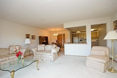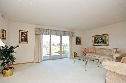 Tranquil setting amid lush greenery and woods at popular River's Edge community. Bright NW corner has elegant floor plan. Large inset balcony off spacious living and dining areas plus open kitchen with separate dinette make a very comfortable home. Side-by-side W/D; assigned garage space #47 is included; private storage; walk to Gompers Park, Jewel-Osco, 2 bus stops; very close to I-94 access. A GREAT place to live!