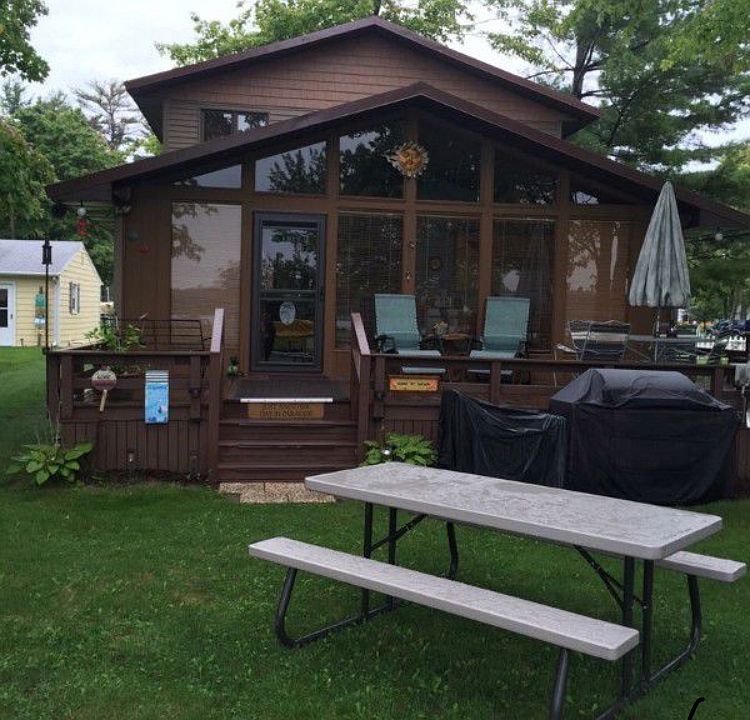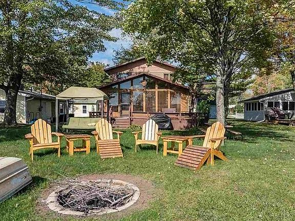 50' of all sports Wixom Lake waterfront. Enjoy lake life affordably! The view of the 2,000 acre lake will melt your troubles away! The level to the waterfront yard is so desired & the steel seawall & vinyl dock are such bonuses. Located on a private, paved road w/ footbridge access to Pleasure Island where a park & pavilion are available for your use. The updated cottage is turn key so just bring your suitcase & enjoy. A wall of windows in the great room brings the outdoors in & a door steps out to the deck. Interior offers newer flooring & fresh paint and the decor is perfectly beachy! Bath with shower even has a door to the side yard making it so convenient for outdoor entertaining. 2 main floor bedrooms, 1 with laundry. Upstairs are 2 additional bedrooms both large enough for 2 beds in each. Bring the whole family and your kids' friends. Maintenance free exterior with vinyl siding & metal roof. Natural gas, central air, Spectrum internet making cabin life easy! Storage shed too.
