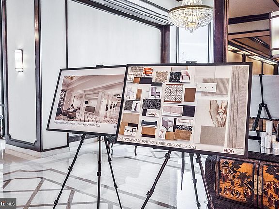 Welcome to this spacious and wonderful 2 bedroom 2 bath contemporary residence in the prestigious Promenade Towers. Beautiful southwest view through a number of oversized windows over the tennis courts and lots of trees. The foyer has two closets…one is for coats and the other is humongous and built out with shelving. The kitchen has “to the ceiling” wood cabinets, beautiful backsplash, tile floor and a granite breakfast counter with seating. The bedrooms have wall-to-wall carpet. The primary bath has a tiled walk-in shower with a seat and shelf, a large vanity, a 3-way mirror over the sink and a linen closet. The second bath has a tub/shower with tile surround, a large cabinet and granite counter. The unit is close, but not too close to the elevators and trash room. The Promenade has a great number of amenities and activities making it feel like resort style living. The recently redecorated Arcade level has the state of the art fitness center with indoor pool and hot tub: locker rooms with showers and sauna. Also in the Arcade is Chef Tony’s restaurant (a well known seafood/Italian eatery), a grocery store/deli, dry cleaners, travel agent, beauty salon, resident lounge, party and conference rooms. There is a large outdoor pool with adjacent grills. Tennis (lighted courts) and pickelball have their own building as you drive onto the property. Ping pong is played regularly, as are social activities such as “Breakfast at Wimbleton”. There are too many activities to mention them all. A few are…trivia night, open mike night, monthly first run movies, lectures, vaccinations, vote in all elections in the party room (including Presidential). There is meditation, exercise class, book club, canasta, bridge, and mahjong. We have wine and cheese get togethers in the lobby, a New Years Eve party and various other celebrations. We have car charging stations, and a car washing area with a dynamite vacuum. Garage parking comes with the unit. It is easy to get to the Red Line Medical Center metro stop at NIH/Walter Reed. The bus comes to the door of the Promenade. Close to 495 and 270. Nearby Wildwood Shopping Center has Balduccis, CVS, Bethesda Bagels, Starbucks, a number of places to eat and several cute boutiques. Giant food is just across the street.