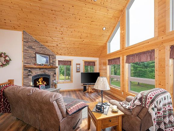 As soon as you drive down the driveway this home screams “Welcome Home” This neat as a pin, 3 bed 2.5 bath home offers luxury vinyl plank flooring throughout. As you enter on the main level you have a large foyer, 1st floor laundry, large ensuite with dual sinks, walk in shower, open concept kitchen, dining & living area with a gas fireplace to warm up to on the chilly Northwoods nights. The kitchen cabinets are custom made Alderwood. There’s a 3-season room that is perfect for enjoying your morning brew or a beverage or two! Relax in here & watch all of the wild life that passes through. LL walk out offers a family room with a bar to host all of your parties on game day! The men will be in Awe with the ginormous 40X40 heated garage. The upstairs is 16X40 & could be finished off for additional use. This home has been meticulously maintained & sits on 9.28 acres. Located right on the ATV/UTV trail & close to snowmobile trails. Don’t miss out on this great opportunity call today to see!