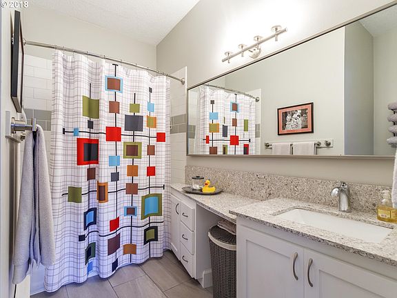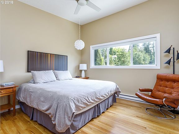 Mid-Century Modern Condo in a great location with gardens and pool. The vaulted ceiling, hardwood floors and fireplace give a timeless feeling ready for you to make your own. Updated throughout with master suite, 1/2 bath, kitchen, large window and A/C. Spacious yet in a private setting with views of the landscaping and pool from your expansive covered patio and Fanno Creek/green belt from the deck.