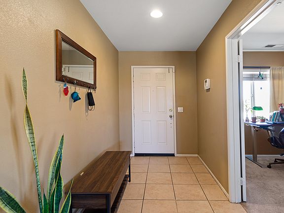 Nestled within the quiet, family-friendly community of Turtle Rock, this beautifully maintained home is just minutes from the Marine Corps Base. Notable features include: an option for a fourth bedroom or office; 18x18 ceramic tile flooring with carpet in bedrooms and living room; open living floor plan; kitchen complete with stainless steel appliances and granite slab countertops; recessed lighting throughout; ceiling fans in bedrooms; huge master suite with dual sink vanity and two walk in closets; panoramic views of the mountains; privacy fencing surrounding a flat backyard that could easily accommodate a pool; spacious back patio with a pergola plus a front patio with balcony; dual glazed windows throughout; finished 2 car garage; laundry area inside and ample additional storage throughout. The HOA includes paid sewer connection.