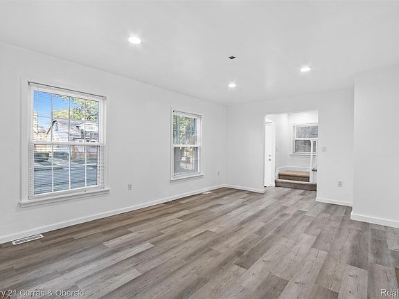 This completely updated colonial is located on a quiet, tree-lined street in Detroit’s East Side. Featuring laminate flooring throughout, the home boasts a charming living room with a classic chimney and a dining room with a sliding door leading to a deck, perfect for outdoor gatherings. Large windows throughout allow plenty of natural light, highlighting the home’s modern updates and spacious rooms.