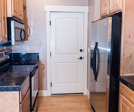 Beautiful Townhouse style Condo within minutes to BSU, Downtown and the Mall. Loaded with upgrades. Bamboo hardwood floors, upgraded carpet & pad. Kitchen comes fully equipped with stainless steel appliances, Refrigerator Included! Granite tile countertops & knotty alder cabinets throughout. Cozy corner slate fireplace with mantel. Oversized bedrooms, large master with walk-in closet, dual vanity & private bath. Custom Wood Shutters and Blinds Throughout.