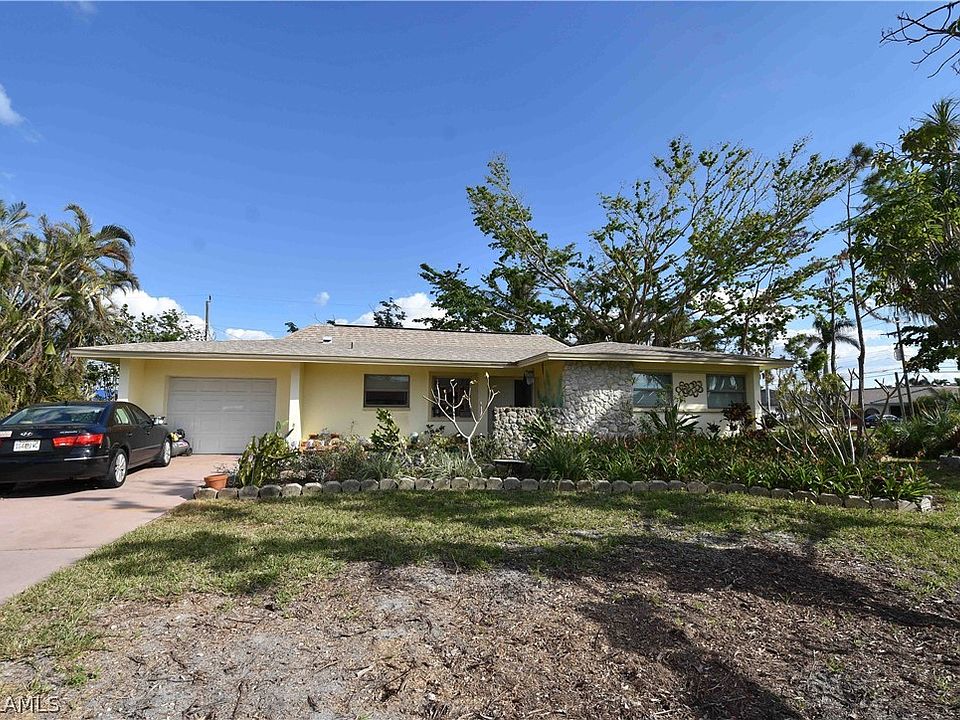This home is located in the Cape Coral Yacht Club area. There are many high end waterfront homes nearby and it is close to the bridge to Fort Myers. The home was affected by Ian, but was immediately cleaned up. Most of the walls are plaster and has terrazzo floors, but the damaged drywall, cabinets and carpeting were removed immediately. It is ready for your remodel. The roof was replaced in 2020 and held up well. The main electrical panel was replaced in 2022. It has great bones to renew for the long term. It is on an oversized corner lot and is located close to shopping, restaurants and commuting routes to Fort Myers and the beaches.