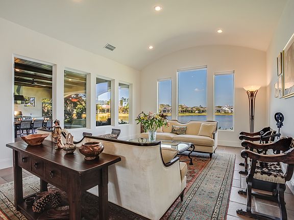Stunning Mediterranean-Mission style custom home in Pablo Creek Reserve, Kevin Gray designed & built by Architectural Classics in 2017 w/ 4791 SF under roof. Corner lot bordering 2 acre park. 16 southern red cedars line drive for complete privacy. Beautifully appointed w/ attention to detail, 12' barrel ceilings, terra cotta tile floors, stone archway & exposed wood beams. Direct lake w/ fountain views from 5 rooms. Open floor plan, large great room, library/den, kitchen w/ island, big walk-in pantry & 2 zone wine chiller, master suite w/ built-in shelving,separate ac, large walk-in shower & fantastic custom closet. 2 guest ensuite bedrooms, one w/ sliding door to incredible screened porch w/ summer kitchen. Home has multiple features/upgrades which add to sq ft value - ask for list