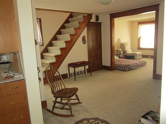 Village of Chatham - Well kept 2BR home, full basement, attached garage. Many features include hardwood floors upstairs and older woodwork throughout. Spacious porch/entry, upstairs landing is perfect for an office or sitting area. The master bedroom has large walk in closet. This home sits on a nice corner lot with lots of room in the yard which is partially fenced, plenty of flower gardens, shed. Updates - vinyl siding, roof, some windows and wiring.