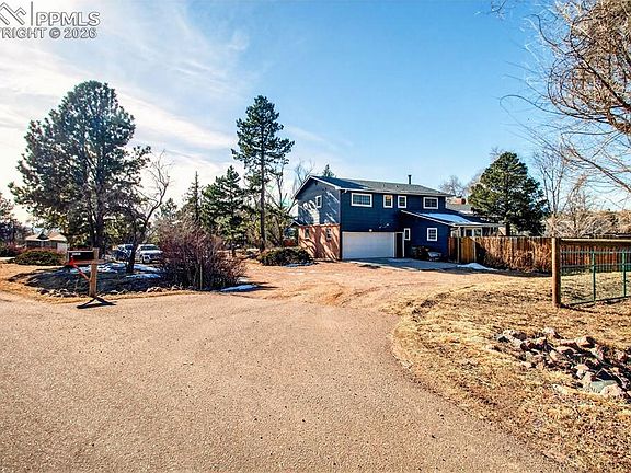 This is a truly rare opportunity to own exactly one acre of land in the middle of Colorado Springs offering privacy, space, & breathtaking mountain views while still enjoying city convenience. Zoned for 2 horses, complete with a barn, this property delivers a lifestyle that’s nearly impossible to find. Inside, the home is warm, inviting, & thoughtfully updated. The main-level family area features newer laminate flooring, custom built-ins, & an entertainment center designed for everyday living & entertaining. Custom barn doors lead to the laundry area, adding character & charm. The home has fresh interior paint, custom window treatments, newer A/C system, newer roof, a stunning updated kitchen with abundant, thoughtfully designed cabinetry, wood flooring throughout the upper levels & bedrooms, & upgraded bathrooms. A standout feature is the lockable main-level bedroom with an attached bath & private exterior entrance, offering exceptional income potential or ideal accommodations for a mother-in-law suite, or guest quarters. Step outside & take in stunning mountain views from the living room, family room, & front porch—perfect for enjoying peaceful mornings, unforgettable sunrises, & quiet Colorado sunsets. The corner lot is framed by mature trees, includes a basketball court, & offers plenty of space to relax, play, or expand your outdoor vision. Additional highlights include a stand-up crawl space recently upgraded with crushed concrete floors, providing accessible & ample storage with easy HVAC access, along with an oversized garage featuring a dedicated workshop, perfect for hobbies, storage or projects. This is more than a home, it’s a rare lifestyle property offering space, privacy, income potential, & sweeping scenery in a location where acreage is almost unheard of. Homes like this simply don’t exist anymore—where acreage, views, flexibility, & modern updates come together in the heart of the city while still offering the peace & quiet of true Colorado living.