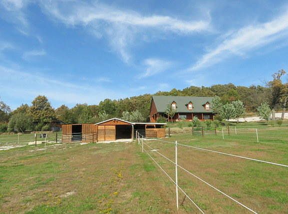 42 pastured & wooded acres of privacy beautifully tucked away at the end of a paved road, close to town, featuring a cedar-sided Home, 4-car detached Garage with Shop, a separate 40 x 60 metal Shop, a 3-stall Barn with 4 electric-fenced paddocks bundled together with a whole lot of other extras. The Home has a wrap-around covered Porch on the front and side overlooking the pastured area in front of the home. The Kitchen/Dining is open to the Living Room and features hickory hardwood flooring flowing also into the main floor Master Bedroom. Upstairs are 3 Bedrooms and a Full Bath with one of these Bedrooms definitely being suitable as another Living Area, Office, Hobby Room, etc. Large Laundry Room on the Main floor has plenty of space for washer, dryer, an upright freezer, water softener A