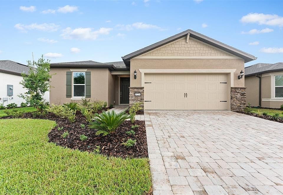 One or more photo(s) has been virtually staged. Move in Ready Available NOW!! Enjoy all the benefits of a new construction home in the serene setting of Ocala, FL's horse country, with an age-restricted, fully amenitized lifestyle at Del Webb Stone Creek. This is the active adult community you've been looking for, with amenities that include an 18-hole championship golf course, a full restaurant and bar, indoor and outdoor pools, sports courts, and so much more. Our sprawling amenities, clubs, and classes will fill your retirement days with activities to make new friends and memories. Featuring the popular Mystique floor plan with an open-concept home design, this home has all the upgraded finishes you've been looking for. The gourmet kitchen showcases a center island, 3cm quartz countertops with 12”x12” tiled backsplash, stylish cabinets, a spacious pantry, and Whirlpool stainless steel appliances, including a built-in oven and microwave, stovetop with wood canopy hood, and dishwasher. The bathrooms have matching stylish cabinets and quartz countertops, dual sinks in the Owner's bath and walk-in shower with niche. There is luxury vinyl plank flooring in the main living areas, flex room, and bedrooms, 22”x22” tile flooring in the bathrooms. This home makes great use of space, with a versatile flex, a convenient laundry room with built in cabinets, an extended covered lanai with screen enclosure, and a 2-car garage. Additional upgrades and features include LED down lighting in the gathering room, upgraded lighting and door hardware, floor outlet, tray ceiling at the gathering room, and a Smart Home technology package with a video doorbell. Enjoy peace of mind with Pulte’s transferable, 10-year Limited Structural Warranty that covers materials and workmanship in the 1st year, workability of plumbing, electrical, HVAC, and other mechanical systems through the 2nd year, various types of water infiltration and internal leaks through the 5th year, and the structural integrity of the home through the 10th year. Plus, we’re currently offering limited-time incentives and below-market rates!
