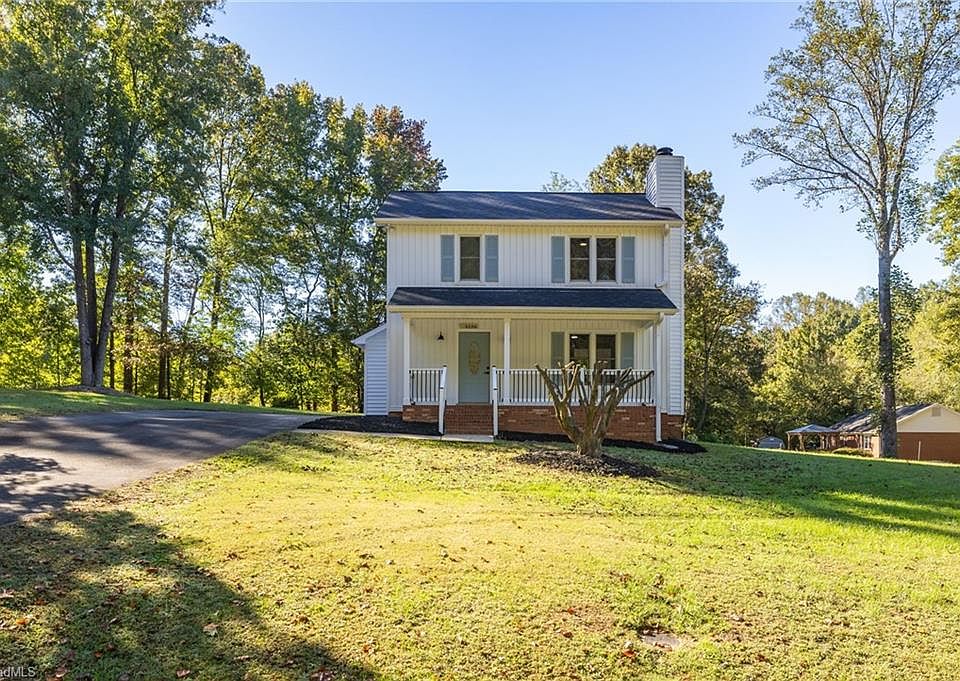 Freshly updated and well-built 2-story home conveniently located near Winston and Kernersville. Nestled outside city limits in a well-established neighborhood with no HOA, this home offers both comfort and practicality. Set on nearly half an acre, the beautifully maintained lawn and spacious, private yard provide a peaceful setting. Recent updates include easy-care flooring throughout, new kitchen cabinets, granite countertops, tile backsplash, and stainless steel appliances. Modern light fixtures and refreshed bathrooms add a stylish touch. All 3 bedrooms are upstairs with a shared hall bath. The main floor features a bright living area, a half bath, and direct access to the back deck from the kitchen. Enjoy relaxing evenings on the covered front porch. A large paved driveway accommodates multiple vehicles, and a detached storage building in the backyard offers extra space. No through traffic adds to the privacy. See Agent Remarks.