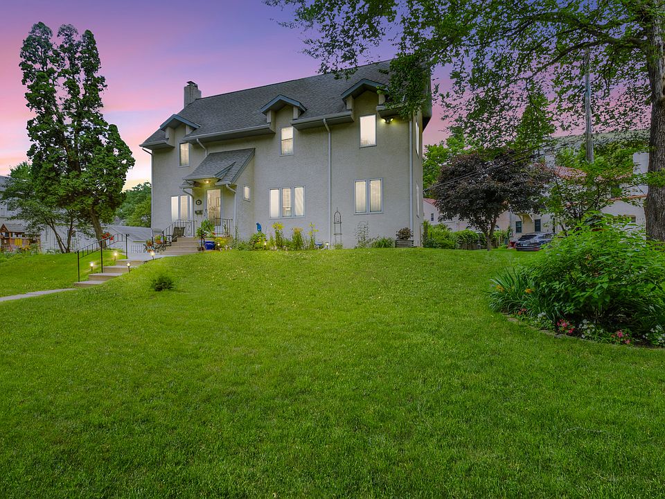 Large Tangletown 2.5 stucco two story just steps off the Minnehaha parkway in Southwest Minneapolis. Large open and bright eat in kitchen with granite counters, stainless appliances, breakfast bar and informal dining with a built in bench. Formal dining room, formal living room with built ins and a wood burning fireplace. Large bedrooms including a master suite with full bathroom and walk in closet. Loftarea with deck. Finished lower level family room with bar, bedroom with en suite 3/4 bathroom. All set on just under a 1/4 acre lot in picturesque Tangletown.