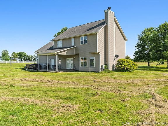 Set on a sprawling 5-acre plot, this country home offers space and quiet in abundance. With five bedrooms, including a cozy master suite with a private bathroom, there's room for everyone! Picture-perfect views await outside, where you can explore and relax in your vast backyard. Inside, gather by the fireplace in the welcoming living area or whip up meals in the well-equipped kitchen. A two-car garage and storage spaces keep everything organized. Relax on the covered back porch and enjoy the simple joys of country living on your own 5-acre retreat. You absolutely must see this home for yourself!