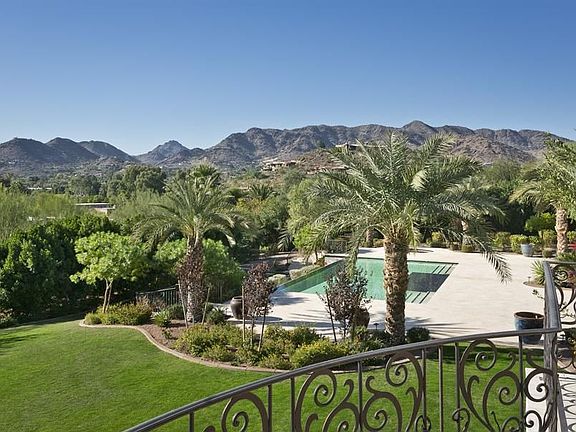 This 16,087sf estate on 1.42 acres near Paradise Valley Country Club has unobstructed Phx and Camelback Mtn Views! Rare for a view lot, there is a huge flat bkyrd w/extensive lawns and 45ft negative edge pool! This estate was built as a custom spec and never lived in. It has exquisite carved millwork,rich hickory floors and superb craftsmanship. Enter see-thru home past 43ft living room disappearing glass doors to a grand patio! Main floor also features a 32ft dining rm, enormous chefs kitchen open to family and breakfast rms, fabulous master suite w/disappearing wall, paneled library w/annex + family/guest wing w/4 bedrms and 2nd family rm. Lower level has 44ft game rm + wine rm, man's retreat, exercise, media, massage + craft rms + guest and maid's quarters. Original price $16,900,000