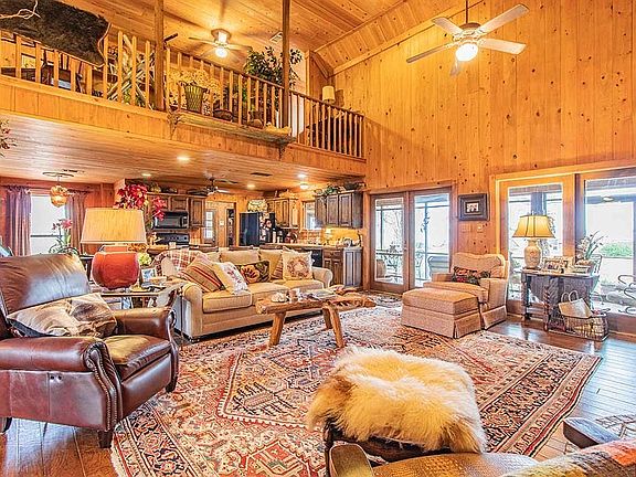 This is a stunning 4 bedroom, 4 bath home located on approximately 2.4 acres RIGHT ON THE WATER at Poverty Point Lake! The home features a great floor plan, with hardwood & plank tile flooring throughout, tall living room ceilings, thick crown molding, recessed lighting, wood plank ceilings throughout, formal dining area with a beautiful stained glass entry, granite counter tops, and plenty of kitchen cabinet space! The Master suite features a vaulted ceiling with exposed wooden beam, dual vanities in the bathroom, a large jet tub, walk-in shower, and a walk-in closet as well! Also, the upstairs includes a very spacious loft with a balcony overlooking the living room! Outside, the home features both an enclosed patio and an enclosed balcony, a 16' x 34' heated/cooled bonus room, and a large open deck overlooking the walkway to the boathouse! The boathouse includes a spacious pier, and two boat slips! The property even has its own private boat ramp! This is a must see property and won't last long, so come see it before it's too late!