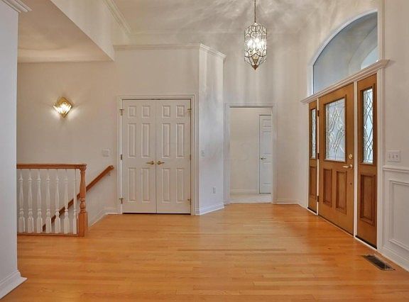 Lovingly cared-for 3 bedroom home in the Courtney Place community! Spacious entryway with large double coat closet greets you upon entry. Gleaming wood floors lead into dining room with wainscoting and multiple windows. Open floor plan allows dining room to flow into living room, which has high ceilings, gas log fireplace, and custom built-in cabinets. Glass doors lead to deck that overlooks the community pond. Large kitchen has ample cabinet space, granite counters, and two pantries! Eat-in area has glass doors that lead to Florida room! Roomy entry level laundry! Bedrooms are spacious, owner's suite has large walk-in closet and dedicated bath. Large unfinished basement with extra laundry sink, cedar closet and built-in storage! Garage has finished floor and custom built-in cabinets! WOW!