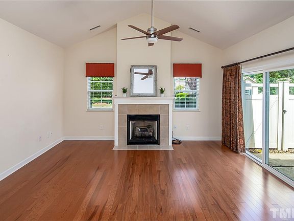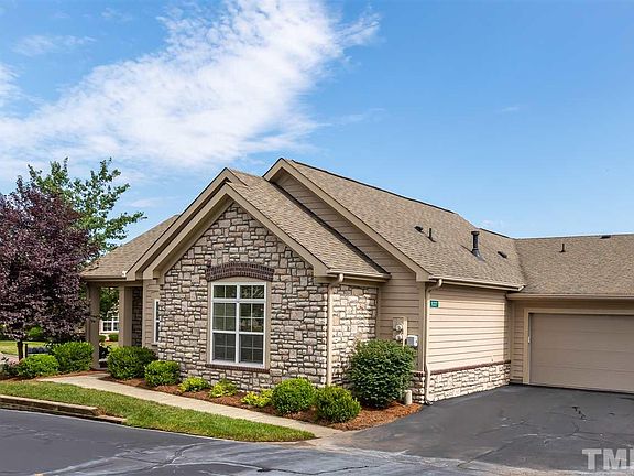 One-Level condo with open floor plan & cathedral ceilings in highly sought-after 55+ community. Perfect location, nestled between Chapel Hill and Durham, close to I-40, UNC/Duke & shopping. Two Bedrooms, Two Bathrooms fireplace & hardwood floors. Kitchen has tons of cabinets & lots of counter space + large island & stainless steel appliances. Gorgeous Master bdrm w/ ceiling fan, walk-in closet, dual vanity sinks, walk-in glass shower & private courtyard. Over-sized 2 car garage. Currently Vacant.