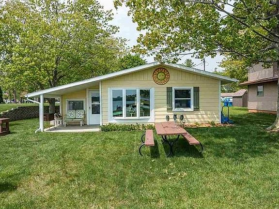 This is what you've been waiting for! 50' of level waterfront with sandy swimming and a wide open view of all sports, 2,000 acre Wixom Lake. Meticulously cared for fully furnished cottage! The sunroom is wonderful place to start or end the day and offers additional sleeping space. It steps out to a covered patio on the lake side and to the shuffleboard court! Enjoy the fire-pit or tiki bar near the waters edge and just relax while the kids swim and play. Step inside the cottage and the beach house atmosphere is awesome! Bow window overlooking the water in the dining space and well equipped kitchen. 1 bedroom and full bath complete the cottage but don't forget the guest house offering another extra large bedroom, full bath and laundry. A 1 car garage for storage, paved drive, beautiful landscaping and another covered patio complete this fantastic package! Steel seawall, dock and central air. Enjoy the private park and playground on Pleasure Island too!