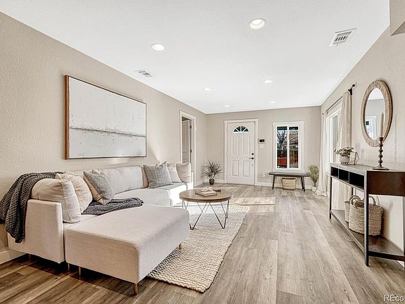 As you enter this charming property in Arvada, the quality renovations immediately capture your attention! Situated in a desirable neighborhood, this home is just a short distance from Old Towne Arvada, light rail stations, neighborhood parks & convenient access to I-70. A "gold mine" of parking is waiting for you with the extensive driveway that provides extraordinary space for numerous cars, RV's, boats, and all your recreational "toys"! This 3 bedroom, 2 bath home combines the perfect blend of charm with modern finishes, offering an open floor plan, and sits on over a 1/4 acre lot! The sizable living room features Luxury Vinyl Plank flooring, modern colors & tones, and large windows allowing an abundance of natural light to flow through. The kitchen is both functional and stylish featuring slab quartz countertops, a tiled backsplash, handsome cabinetry, recessed lighting, stainless steel appliances, and all the modern amenities you need. Throughout the home, newer trim, doors, and quality windows, add to the overall appeal and value! The dining room offers versatility, allowing for an in-home office, media room or the ideal eating space. The primary bedroom and bath provide ample closet space, an impressive walk-in shower, and dual sinks! Two spacious secondary bedrooms, a well appointed full bath, and a laundry room with plenty of storage add further to the home's practicality. Outside, the large front & back yards, front porch, patio, and privacy fence create the perfect outdoor retreat. The convenience of a one-car oversized garage along with this unique lot provide plenty of options & possibilities. Arvada is home to 125 miles of hiking, cycling, & horseback riding trails with Clear Creek Trail System. Close proximity to major highways, light rail & public transportation stations, shopping, and numerous dining options makes this home more than just a place to live, it offers a vibrant lifestyle you'll enjoy every day!