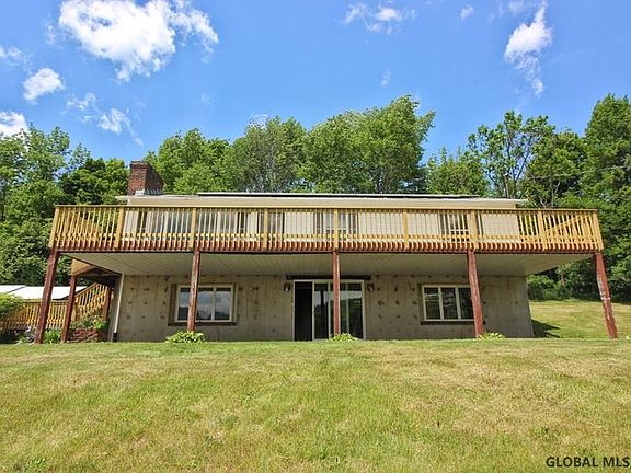 Fresh paint throughout and new flooring too in this ranch on a hill. Huge deck encompasses the entire front of house and around the side taking in the south and westerly mountain views. All new deck railings and entire house freshened up so you can move right in! Lower level with walk out and fireplace insert as well as a half bath and laundry is all ready for you to finish into a family room, a home gym, and even another bedroom. Also has a tool shop area set up with plenty of storage shelves. Glass slider to outside concrete patio then short walk to spacious outbuilding that has electric. Currently a bee hive set up along with electric fencing to keep critters out. The rolling front lawn offers privacy and seclusion from the road, yet 40 min commute to Troy/Albany area or 5 miles to VT!